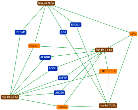 In silico analysis was performed to identify the main genetic interactions network of the let-7 family strongly related to available genes at https://ccb-web.cs.uni-saarland.de/mirtargetlink/index.php [22].