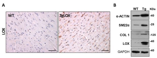 - Ohmura, H.; Yasukawa, H.; Minami, T.; Sugi, Y.; Oba, T.; Nagata, T.; Kyogoku, S.; Ohshima, H.; Aoki, H.; Imaizumi, T. Cardiomyocyte-specific transgenic expression of lysyl oxidase-like protein-1 induces cardiac hypertrophy in mice. Hypertens. Res. 2012, 35, 1063–1068. [Google Scholar] [CrossRef]