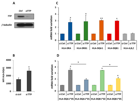 2.3. Knockdown of TTP Affects the Expression Level of DQA1 and DQB1 Transcripts