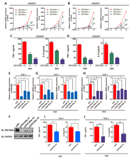 3.2. Full-Length ZNF268 Deficiency Impaired SeV-Induced Proinflammatory Cytokine Production