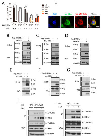 3.6. ZNF268a Was Required for Assembly of the IKK Signaling Complex