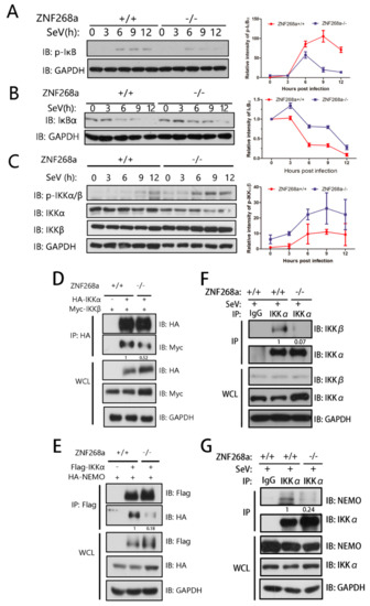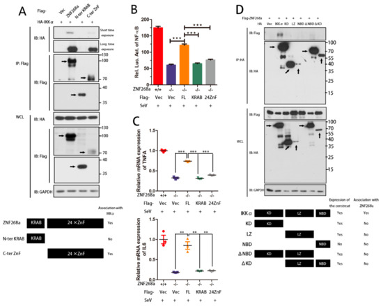Chicago/Turabian StyleLiu, Yi, Wei Yin, Jingwen Wang, Yucong Lei, Guihong Sun, Wenxin Li, Zan Huang, and Mingxiong Guo. 2019. "KRAB-Zinc Finger Protein ZNF268a Deficiency Attenuates the Virus-Induced Pro-Inflammatory Response by Preventing IKK Complex Assembly" Cells 8, no. 12: 1604. https://doi.org/10.3390/cells8121604