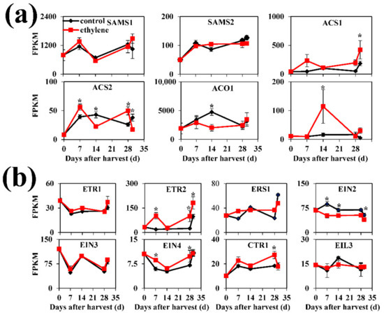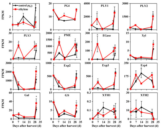 4.2. Alleviation of Postharvest Chilling Injury by Ethylene Involves Altered Expression of Genes Related to Browning and Cell Wall Metabolism