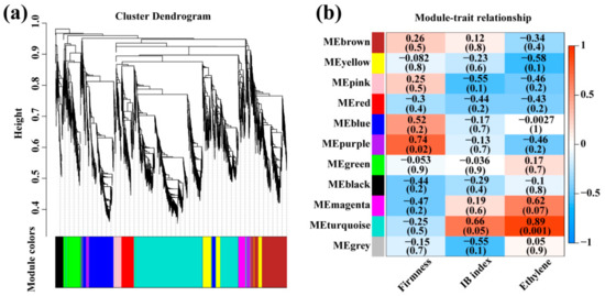 - Langfelder, P.; Horvath, S. WGCNA: An R package for weighted correlation network analysis. BMC Bioinform. 2008, 9, 559. [Google Scholar] [CrossRef]