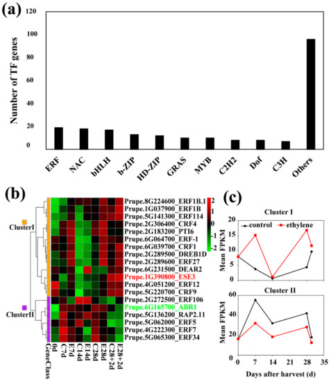 - Hayama, H.; Shimada, T.; Fujii, H.; Ito, A.; Kashimura, Y. Ethylene-regulation of fruit softening and softening-related genes in peach. J. Exp. Bot. 2006, 57, 4071–4077. [Google Scholar] [CrossRef] [PubMed]