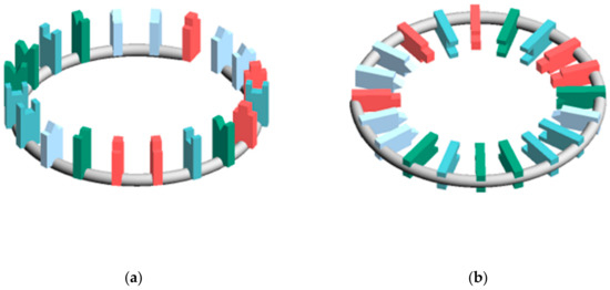 In calculating and , the miRNA structure was regarded as a torus. This is because the existence of circular RNA is known and the topologically toric body has a high degree of freedom. Three types of miRNA structures were defined (Figure 2). In the structure X, and is defined as and , respectively. In each structure, the distance between bases was , the nucleobases length was , and the distance between sites was . In Structure C, the angle between the nucleobases and the surface formed by the torus was .