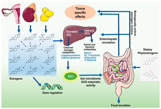 43. Gorbach, S.L.; Goldin, B.R. Diet and the excretion and enterohepatic cycling of estrogens. Prev. Med. 1987, 16, 525–531. [Google Scholar] [CrossRef]