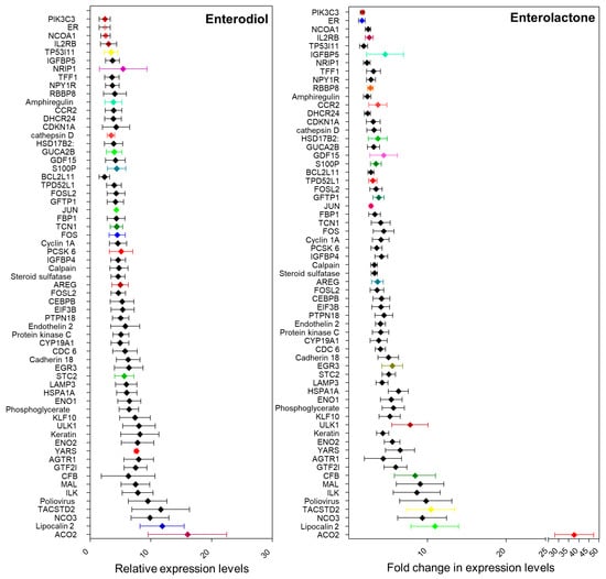 Figure 3. Relative expression levels of estrogen responsive genes in MCF7 cells treated with Enterodiol and enterolactone (Analyses of GEO2R, [32]).