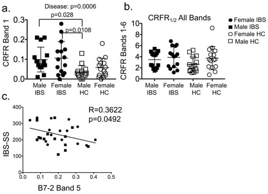 3.1.4. Plasma CRF Receptor Levels Associate with IBS Disease, but Not Sex