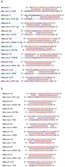 MicroRNAs (miRNAs) are a type of ~22 nt long non-coding RNAs, which play a critical role in regulating gene expression. They usually target the 3′-untranslated region (UTR) or mRNA coding sequences (CDS) to prevent mRNA translation or promote degradation []. miRNAs are now a fundamental part of the entire regulatory network of biological process, including cell proliferation, differentiation, and death both during physiological and pathological states [,,,]. Many miRNAs are found in the nucleus where they regulate multiple processes, such as chromatin remodeling [], transcriptional silencing [], mRNA alternative splicing [,], and microRNA maturation [,].