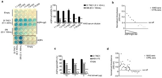 The E14 and E30 fractions enriched in AQP4 of nSEC analysis from DI TNC1 and Sf9 vesicles, respectively, were used to perform ELISA. Sensitivity and selectivity were calculated as described [].