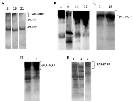 28]. Polyclonal anti-PARP1 catalytic site antibodies (H-250, Santa Cruz Biotechnology, Inc., Dallas, TX, USA) were used to evidence PARPs, in either native or automodified state.