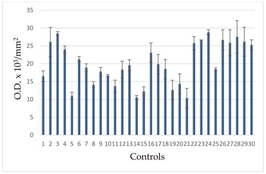 The non-parametric Mann–Whitney U test was also performed because of the small sizes of the groups (≤30) and the presence of outliers in some samples. This test allowed to evaluate the difference of the groups on the basis of medians instead of means. Pairs of groups were compared, in order to determine the U value (p ≤ 0.05). In each pair controls were compared with one of the volunteers’ groups. The calculated U values were all above the corresponding tabulated critical one, and again confirmed the statistical significance of results in the various groups.