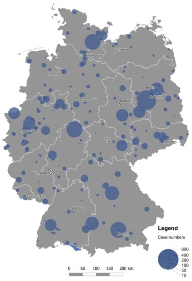 Area-proportional representation of PD-MCT case numbers in German hospitals in 2016.