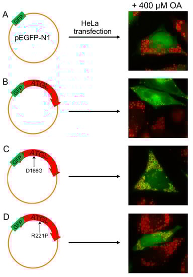 - Cornaciu, I.; Boeszoermenyi, A.; Lindermuth, H.; Nagy, H.M.; Cerk, I.K.; Ebner, C.; Salzburger, B.; Gruber, A.; Schweiger, M.; Zechner, R.; et al. The minimal domain of adipose triglyceride lipase (ATGL) ranges until leucine 254 and can be activated and inhibited by CGI-58 and G0S2, respectively. PLoS ONE 2011, 6, e26349. [Google Scholar] [CrossRef]