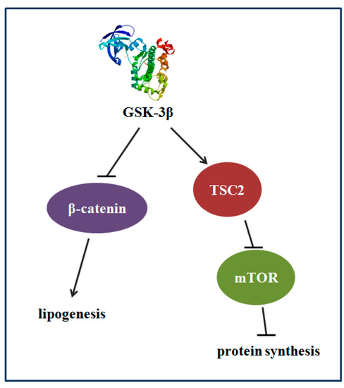 The results of GSK-3β gene overexpression indicated that GSK-3β may participate in regulating protein synthesis via TSC2/mTOR signaling and lipid deposition via β-catenin signaling in the muscle of zebrafish (Danio rerio) (Figure 9).