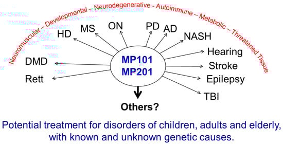 DNP as a Broad-Spectrum Treatment. DNP (MP101) or the prodrug of DNP (MP201) has been tested in disease models of acute and chronic studies with a known and unknown genetic cause that representing pediatric, adult and elderly indications with statistically positive outcomes. The indications also present diseases of neuromuscular disorders, development, neurodegeneration, autoimmune, metabolic and trauma. The future will help to determine the limitations of the pharmacology, but given the findings, it appears that DNP may be a broad-spectrum treatment to many disorders.