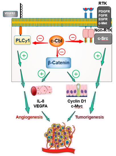 angiogenesis; tumors; ubiquitination; proteasomal degradation; c-Cbl; RTK; non-RTK; VEGFR; FGFR; PDGFR; EGFR; c-Met; Wnt signaling; β–catenin; PLCγ1 1. Introduction