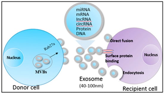 - Valadi, H.; Ekström, K.; Bossios, A.; Sjöstrand, M.; Lee, J.J.; Lötvall, J.O. Exosome-mediated transfer of mRNAs and microRNAs is a novel mechanism of genetic exchange between cells. Nat. Cell Biol. 2007, 9, 654–659. [Google Scholar] [CrossRef]