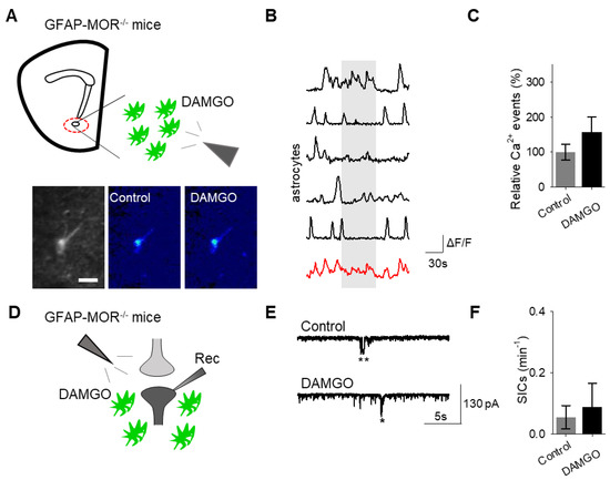 - Nam, M.H.; Han, K.S.; Lee, J.; Bae, J.Y.; An, H.; Park, S.; Oh, S.J.; Kim, E.; Hwang, E.; Bae, Y.C.; et al. Expression of micro-Opioid Receptor in CA1 Hippocampal Astrocytes. Exp. Neurobiol. 2018, 27, 120–128. [Google Scholar] [CrossRef] [PubMed]
