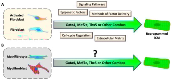 - Srivastava, D.; Ieda, M. Critical factors for cardiac reprogramming. Circ. Res. 2012, 111, 5–8. [Google Scholar] [CrossRef]