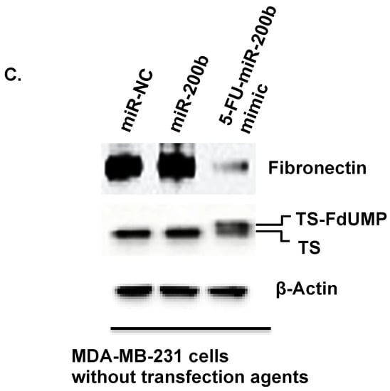 19]. We have demonstrated that 5-FU released from 5-FU-miR-200b will be able to form the suicide ternary complex 5-FdUMP-TS-THF, which will result a super band shift on the western blot analysis compared to 5-FU control (
