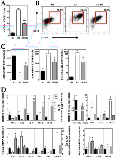 - Ambarus, C.A.; Krausz, S.; van Eijk, M.; Hamann, J.; Radstake, T.R.; Reedquist, K.A.; Tak, P.P.; Baeten, D.L. Systematic validation of specific phenotypic markers for in vitro polarized human macrophages. J. Immunol. Methods 2012, 375, 196–206. [Google Scholar] [CrossRef]