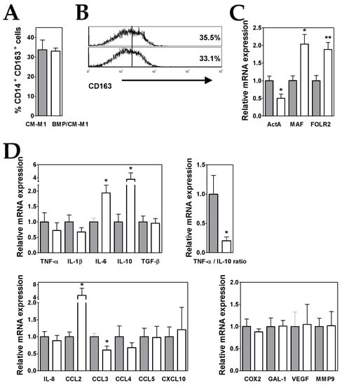 - Sierra-Filardi, E.; Puig-Kroger, A.; Blanco, F.J.; Nieto, C.; Bragado, R.; Palomero, M.I.; Bernabeu, C.; Vega, M.A.; Corbi, A.L. Activin A skews macrophage polarization by promoting a proinflammatory phenotype and inhibiting the acquisition of anti-inflammatory macrophage markers. Blood 2011, 117, 5092–5101. [Google Scholar] [CrossRef]