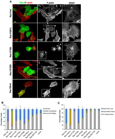3.5. Rac1 Mutants with Elevated Intrinsic GDP/GTP Exchange Activities Induce Filopodia