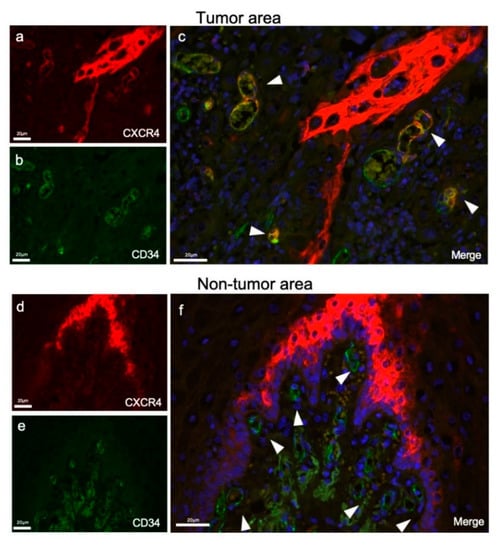 - Schimanski, C.C.; Bahre, R.; Gockel, I.; Müller, A.; Frerichs, K.; Hörner, V.; Teufel, A.; Simiantonaki, N.; Biesterfeld, S.; Wehler, T.; et al. Dissemination of hepatocellular carcinoma is mediated via chemokine receptor CXCR4. Br. J. Cancer 2006, 95, 210–217. [Google Scholar] [CrossRef] [PubMed]