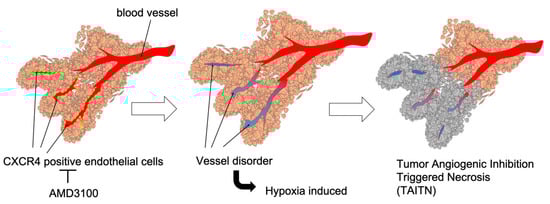 3.3. Pathophysiological Structure of Tumor Angiogenic Inhibition with Tumor Necrosis Induced by CXCR4 Antagonism