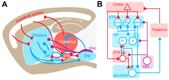 - Graybiel, A.M. The basal ganglia: Learning new tricks and loving it. Curr. Opin. Neurobiol. 2005, 15, 638–644. [Google Scholar] [CrossRef] [PubMed]