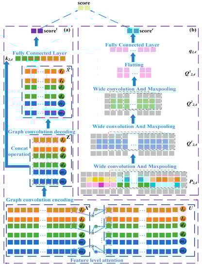 where is the feature-level attention weight vector of , and is the weight of the kth feature of . Therefore, the node enhancement vector based on the feature-level attention mechanism is,