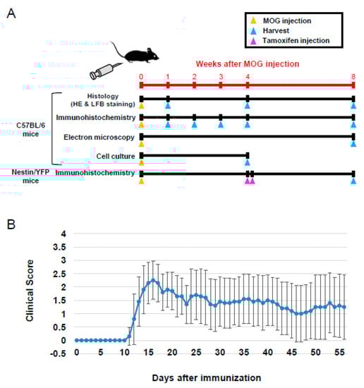 - Hasselmann, J.P.C.; Karim, H.; Khalaj, A.J.; Ghosh, S.; Tiwari-Woodruff, S.K. Consistent induction of chronic experimental autoimmune encephalomyelitis in C57BL/6 mice for the longitudinal study of pathology and repair. J. Neurosci. Methods 2017, 284, 71–84. [Google Scholar] [CrossRef] [PubMed]