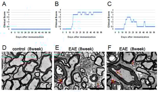 - Bando, Y.; Nomura, T.; Bochimoto, H.; Murakami, K.; Tanaka, T.; Watanabe, T.; Yoshida, S. Abnormal morphology of myelin and axon pathology in murine models of multiple sclerosis. Neurochem. Int. 2015, 81, 16–27. [Google Scholar] [CrossRef] [PubMed]