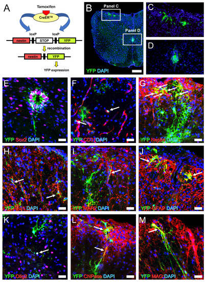 - Xu, R.; Wu, C.; Tao, Y.; Yi, J.; Yang, Y.; Zhang, X.; Liu, R. Nestin-positive cells in the spinal cord: A potential source of neural stem cells. Int. J. Dev. Neurosci. 2008, 26, 813–820. [Google Scholar] [CrossRef] [PubMed]
