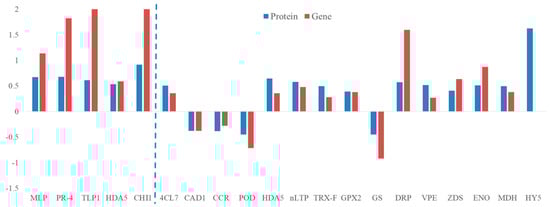 In order to evaluate the transcript changes of differentially accumulated proteins, we conducted RT-qPCR. As shown in Figure 7, all the gene expression were consistent with protein level, except HY5.