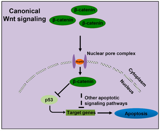 A schematic model for the connection between Nup62l-regulated Wnt/β-catenin and apoptotic signaling pathways.