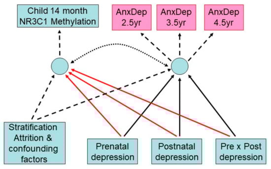 - Braithwaite, E.C.; Kundakovic, M.; Ramchandani, P.G.; Murphy, S.E.; Champagne, F.A. Maternal prenatal depressive symptoms predict infant NR3C1 1F and BDNF IV DNA methylation. Epigenetics 2015, 10, 408–417. [Google Scholar] [CrossRef]