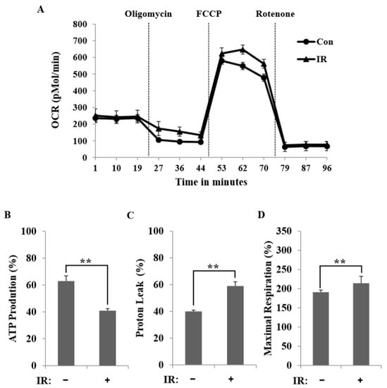 IR alters mitochondrial functions, increases mitochondrial oxidative stress, and causes specific changes in the expression of mitochondrial genes related to cell survival [