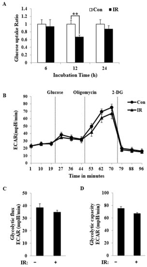 18]. In this study, we not only determined basal respiration, but also identified the type of exogenous nutrient substrates that are capable of being oxidized and the rates at which they can be oxidized under the experimental conditions used. Our results show that IR-exposed C2C12 myotubes possessed the ability to oxidize fatty acid and glutamine at higher rates than control C2C12 myotubes (