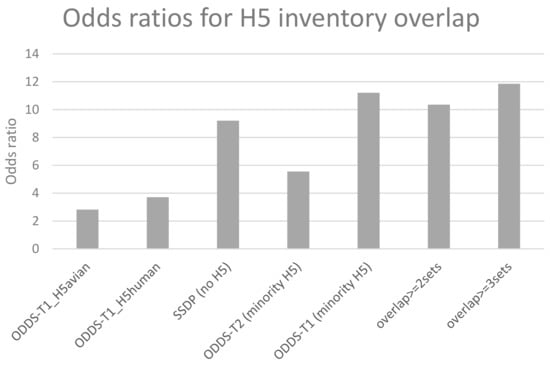 Overlap of different sets of passage sites with host specificity sites in the H5 genetic changes inventory.