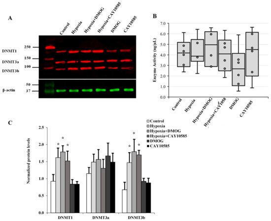 - Lin, G.; Sun, W.; Yang, Z.; Guo, J.; Liu, H.; Liang, J. Hypoxia induces the expression of TET enzymes in HepG2 cells. Oncol. Lett. 2017, 14, 6457–6462. [Google Scholar] [CrossRef] [PubMed]