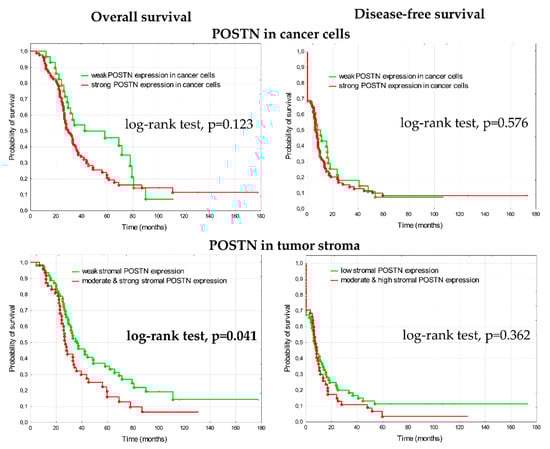 Overall, our results support the role of the cancer microenvironment in tumor progression and prognosis. Our results also indicate, together with the results obtained by others [9], that fibronectin and periostin play the role of extracellular drivers of malignancy.