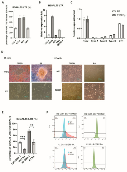 3.1. B3GALT5-LTR is Highly Expressed in ES and EC Cells