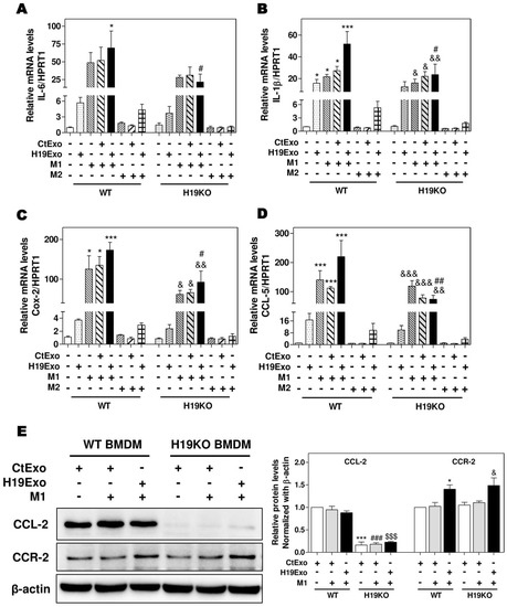 3.4. Effects of CCL-2 on Exosomal H19-Induced Macrophage Activation and BMDM Migration