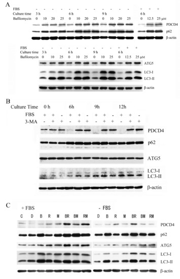 3.1. The Autophagy Inhibitors Bafilomycin A1 and 3-Methyladenine Upregulated PDCD4 in Huh7 Hepatoma Cells