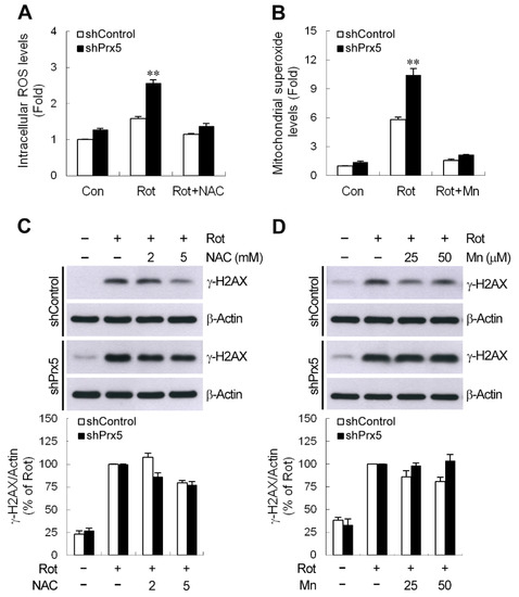 3.7. ROS Does Not Contribute to Prx5 Depletion-Increased γ-H2AX Induction by Rotenone