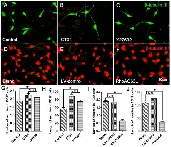 3.2. The RhoA Pathway Negatively Regulates Neurite Outgrowth in Neuronally Differentiated PC12 Cells