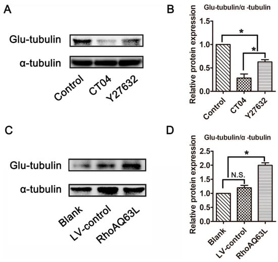 3.3. The RhoA Signaling Pathway Increases Glu-Tubulin Expression in Neuronally Differentiated PC12 Cells